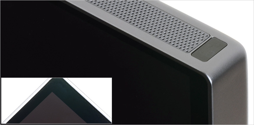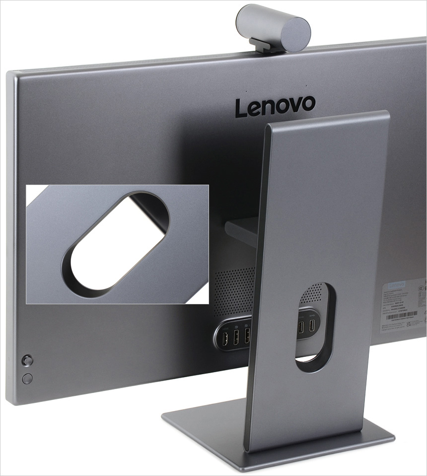 모니터 상단부의 모습으로 음성이나 기타 사운드를 인식하는 2개의 마이크가 설치되어 있고 자동밝기 조정을 위한 엠비언트 라이트 센서가 설치된 것을 확인할 수 있다. 또한 중앙에는 카메라 장착을 위한 C타입 단자를 지원한다. (카메라를 장착한 상태에서 가이드에 부착된 볼트를 드라이버로 조여주면 고정된다.)