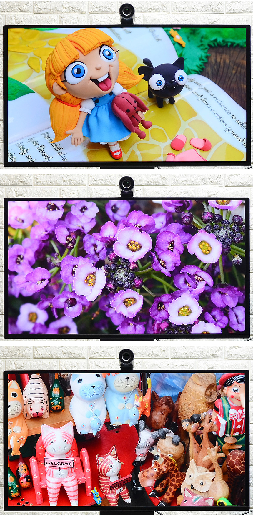 카메라 각도를 자유롭게 조절할 수 있는점도 큰 특징중 하나라 할 수 있다. 책상위에서 그림을 그리거나 피아노를 치는 등의 작업을 할 경우 일반 카메라로는 촬영이 상당히 힘든데 반해 기본 장착된 4K 모듈형 카메라의 각도를 원하는 대로 조정할 수 있어 편하게 촬영을 할 수 있다. 특히 노트북이나 올인원PC에 장착된 카메라와는 비교가 되지 않을 만큼 뛰어난 카메라 화질을 제공해 (디테일과 화질을 보고 깜짝 놀랄 정도였다.) 고가의 카메라를 구입하지 않아도 퀄리티 높은 영상을 만들 수 있다.