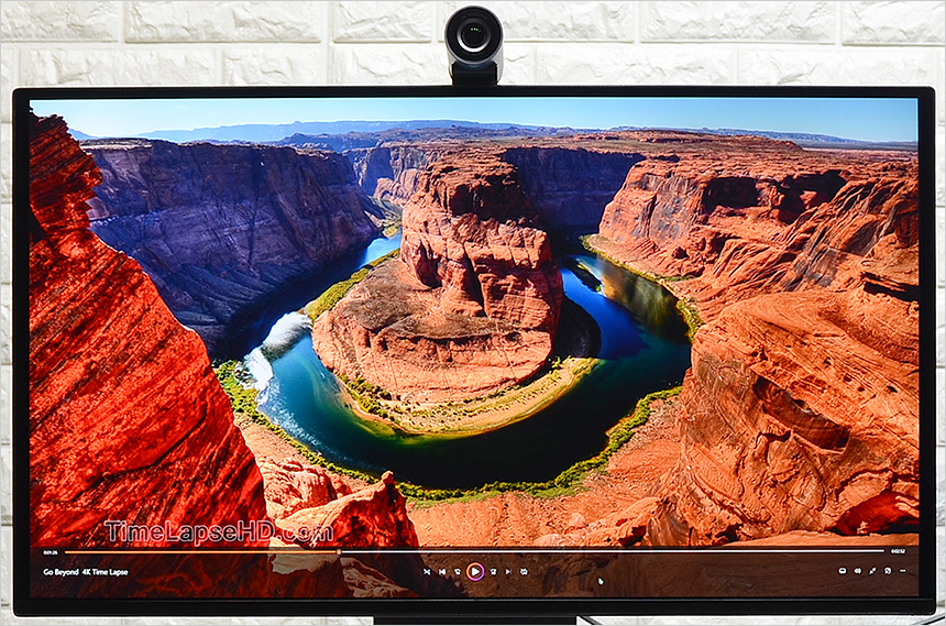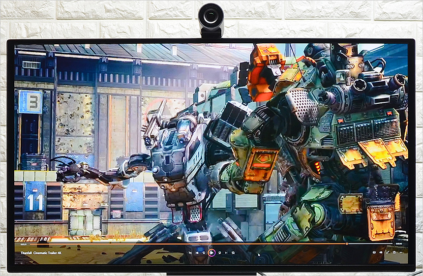 4K 동영상을 이용해 영상 테스트를 진행하고 있는 모습으로 일반 모니터에서는 경험하기 힘든 진한 컬러를 보여주었으며 4K 특유의 디테일도 아주 마음에 들었다. 물감을 뿌려놓은 듯한 진한 색감에 박진감 넘치는 스피커 사운드가 더해진 모니터로 고화질 영상 감상시에도 분명한 차이를 경험할 수 있을 것이다.