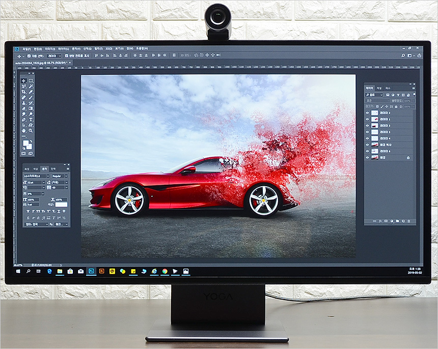 원본 JPG 파일을 재생하고 있는 모습으로 특유의 진한 색감이 인상적이었으며 암부에서 자연스러운 명암처리가 돋보였다. 0.153mm 의 픽셀피치를 지원하는 모델로 얇은 선이나 머리카락 등이 뭉개지지 않고 완벽에 가깝게 표현되는 모니터로 인물사진 편집이나 3D, 캐드 등의 다양한 용도로 활용할 수 있다.