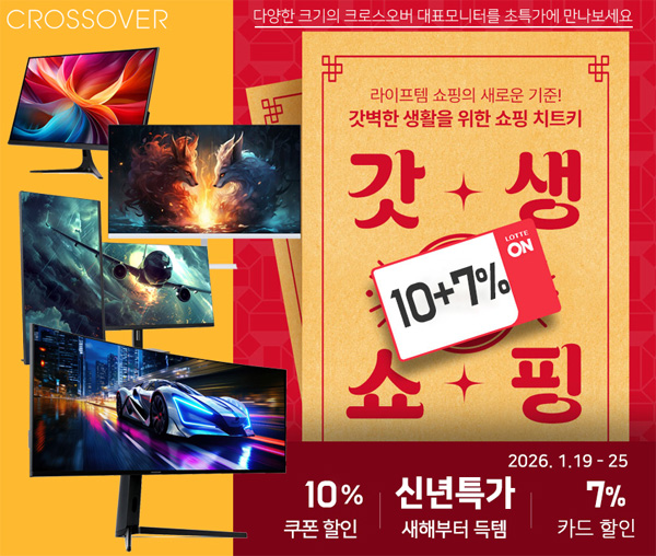 크로스오버는 자사의 인기 게이밍 모니터 20종을 대상으로 롯데온 2026년 1월 롯데온 갓생쇼핑 & 신년특가 프로모션을 진행한다고 밝혔다.