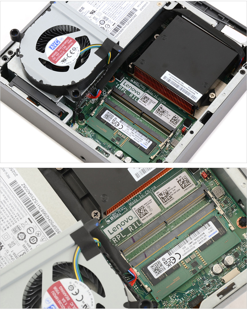 팬을 들어올리면 내부에 메모리 슬롯이 설치된 것을 확인할 수 있다. 8GB DDR5 5600MHz 단일 메모리가 장착되어 있고 두 개의 슬롯을 지원해 추후 간편하게 메모리를 추가할 수 있다. (디자인 등의 작업용으로 사용할 경우 8GB를 추가해 16GB 듀얼채널로 구성하기 바란다.)