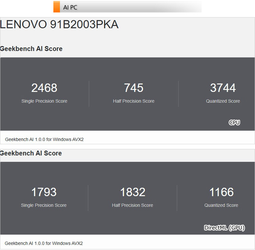 AI 전용 벤치마크 툴을 이용해 AI 성능 테스트를 진행하고 있는 모습으로 대중화된 AI관련 기술은 충분히 활용할 수 있는 스코어를 보여주었다.