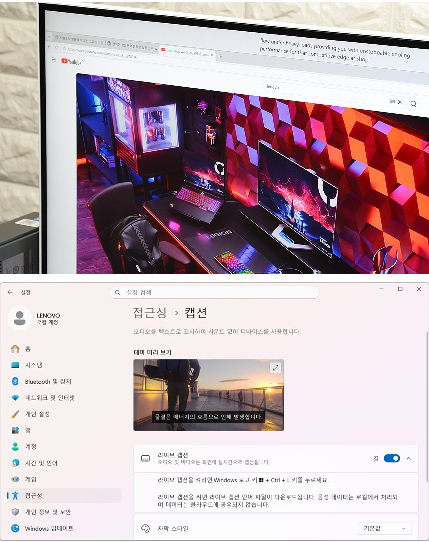 AI 가 음성을 텍스트로 변환해 주는 라이브 캡션 기능을 사용할 수 있다. 다양한 언어의 오디오 자막을 텍스트로 표시해 주어 사무실 등에서 스피커나 이어폰을 사용하기 힘들 경우나 화상회의 에서 적극적으로 사용하기 바란다. (영어 뿐만 아니라 한국어도 지원한다.)