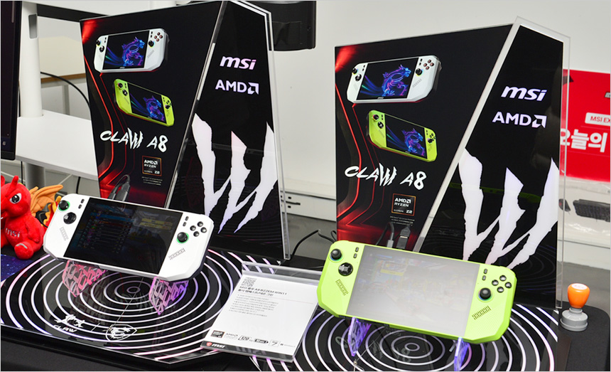 또한 AMD 프로세서를 탑재한 MSI 클로 A8 BZ2EM 은 MSI 최초의 AMD 기반 게이밍 UMPC로 강력한 성능과 선명한 대화면을 선호하는 유저들을 위한 최고급형 모델이다. AMD 라이젠 Z2 Extreme 프로세서와 24GB 듀얼채널 메모리로 보급형 모델들을 압도하는 강력한 성능을 경험할 수 있으며 FSR 뿐만 아니라 RSR, RIS, AFMF 등의 최신 기술을 통해 쾌적하게 게임을 플레이 할 수 있다.