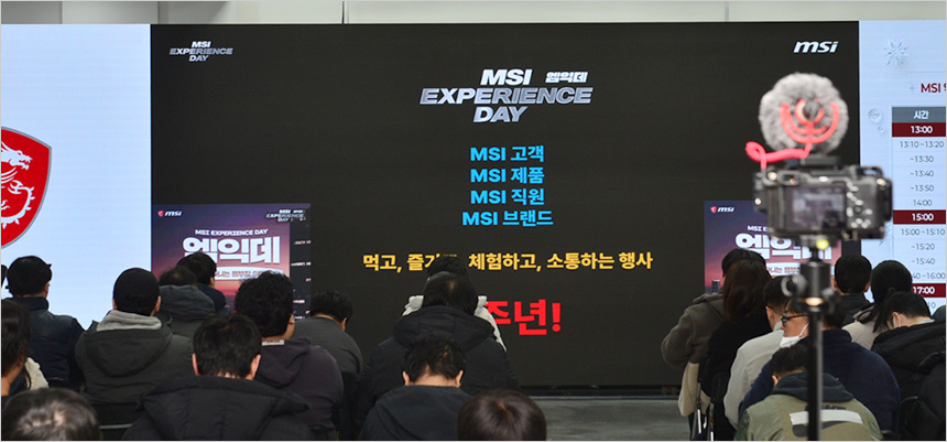MSI는 27일 토요일 용산에 위치한 공간오즈에서 MSI 익스피리언스 데이를 개최했다. MSI를 좋아하는 약 100여명에 유저들과 함께한 이번 행사에서는 MSI의 최신 그래픽카드, 노트북, 모니터, 메인보드 등 주요 하드웨어 제품을 한자리에서 직접 보고, 만지고, 체험할 수 있었을 뿐만 아니라 출시 예정제품에 대한 소개와 다양한 이벤트 등을 진행해 큰 호응을 받았다.