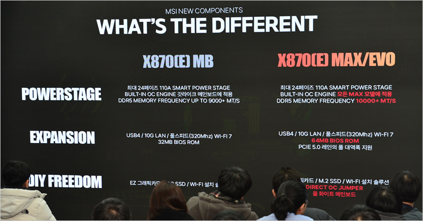 참고로 ALL 화이트 컬러의 메인보드가 출시될 것이라는 소식도 전했다. 최근 화이트 컬러의 PC를 만드는 유저들이 늘어나는데 메인보드 선택이 제한적이어서 아쉬움을 느끼는 유저들이 많았는데 MSI에서 화이트 모델을 출시해 좋은 반응이 예상된다.