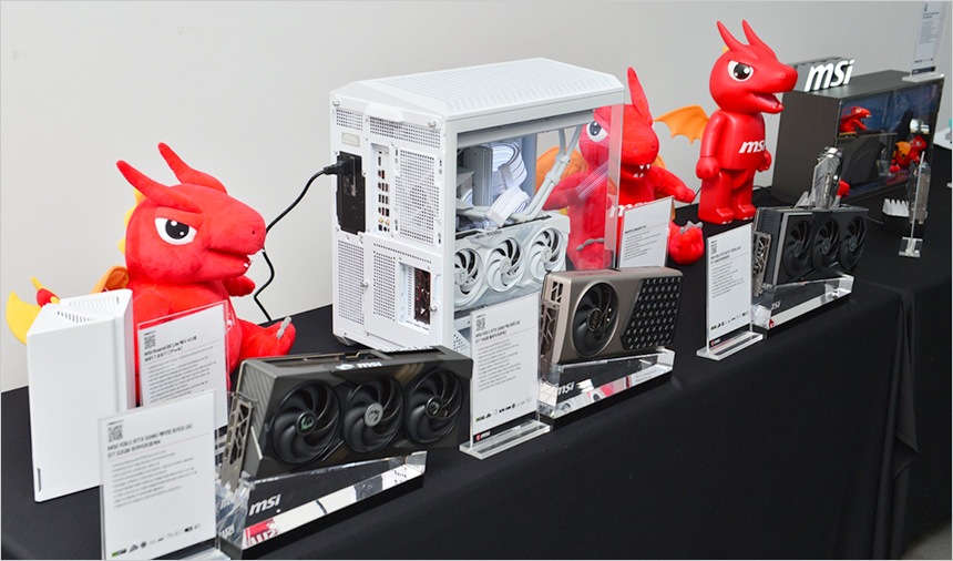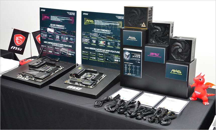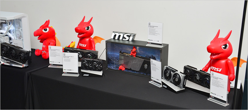 고급형 메인보드 시장에서 큰 사랑을 받고 있는 MSI 는 신기술이 적용된 최신 제품의 전시와 소개는 물론 2026년 출시 예정인 새로운 스타일의 제품들을 소개해 유저들에게 큰 호응을 얻었다. 뿐만 아니라 고급형 파워서플라이 시장에서 조금씩 점유율을 높여가고 있는 다양한 파워 서플라이와 뛰어난 쿨링 성능을 보여주는 수랭쿨러에 대한 소개도 있었다.
