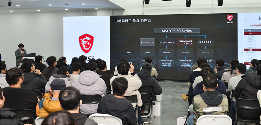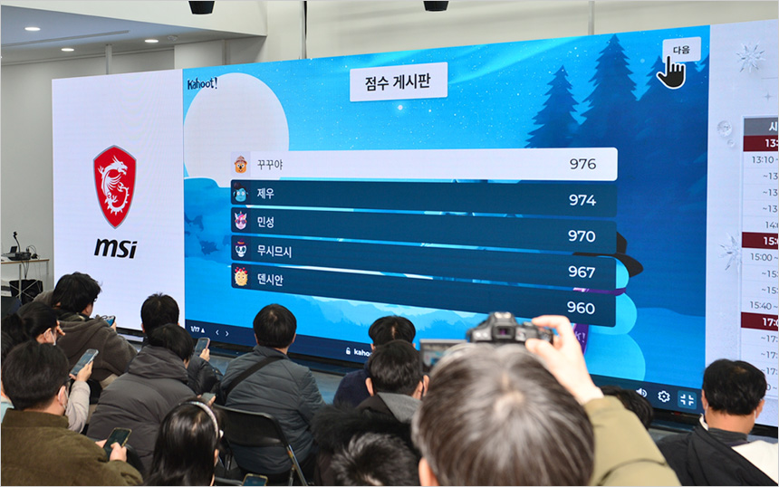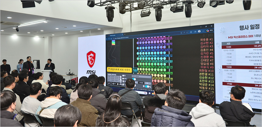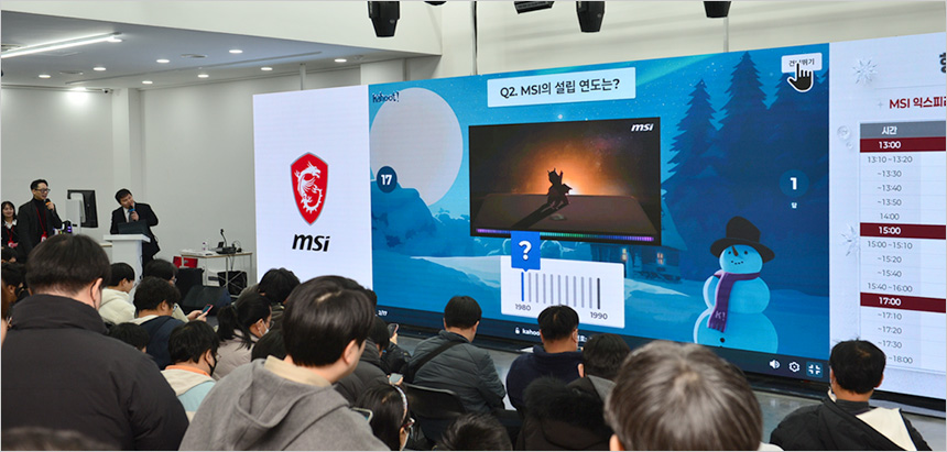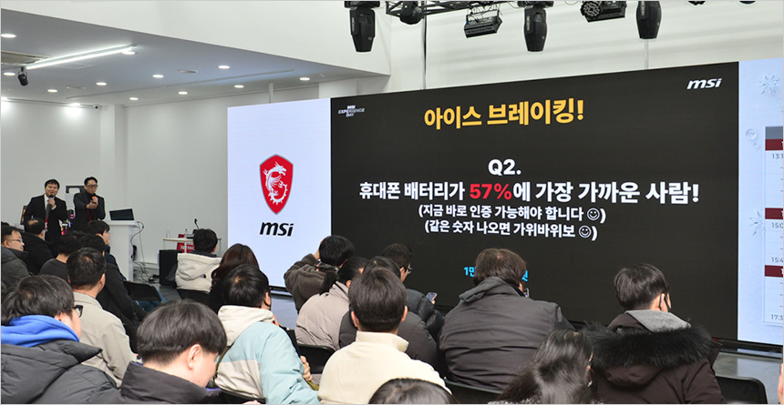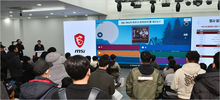 오후 1시에 시작된 이번 행사는 제품 소개 및 간담회 뿐만 아니라 중간중간 다양한 미니게임을 진행해 즐거움을 더했다. MSI 제품에 대한 간단한 퀴즈를 통해 경품을 증정하는 시간을 제공했으며 유저들의 적극적인 참여가 돋보였다.