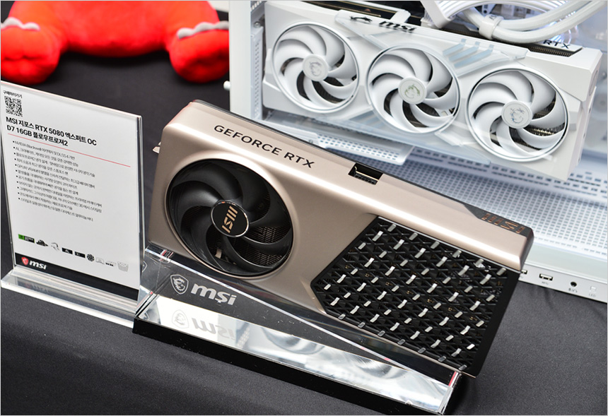 하이엔드급은 물론 메인스트림 시장에서도 뛰어난 성능으로 큰 인기를 끌고 있는 MSI 그래픽카드의 모습으로 대장급 모델인 RTX 5090을 시작으로 RTX 5080과 5070 Ti, RTX 5060 Ti등 다양한 제품이 전시되었다. MSI 는 하이엔드급 모델인 슈프림을 비롯해 최고급형 라인업인 뱅가드, 고급형 그래픽카드 시장에서 큰 인기를 끌고 있는 게이밍 트리오, 가성비에 특화된 밴투스 등의 라인업으로 구성되어 성능과 기능등을 고려해 최적의 선택을 할 수 있다.