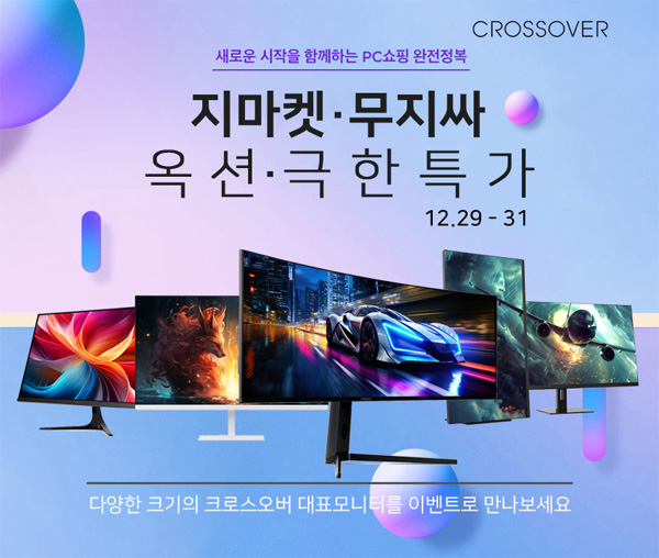 크로스오버는 자사의 인기 게이밍, 고해상도 모니터들을 대상으로 12월 지마켓 무지싸 & 옥션 극한 특가를 펼친다.