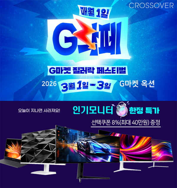 크로스오버는 자사의 인기 게이밍 고해상도 모니터들을 대상으로 ‘2026년 3월 지마켓 옥션 G락페’를 펼친다.