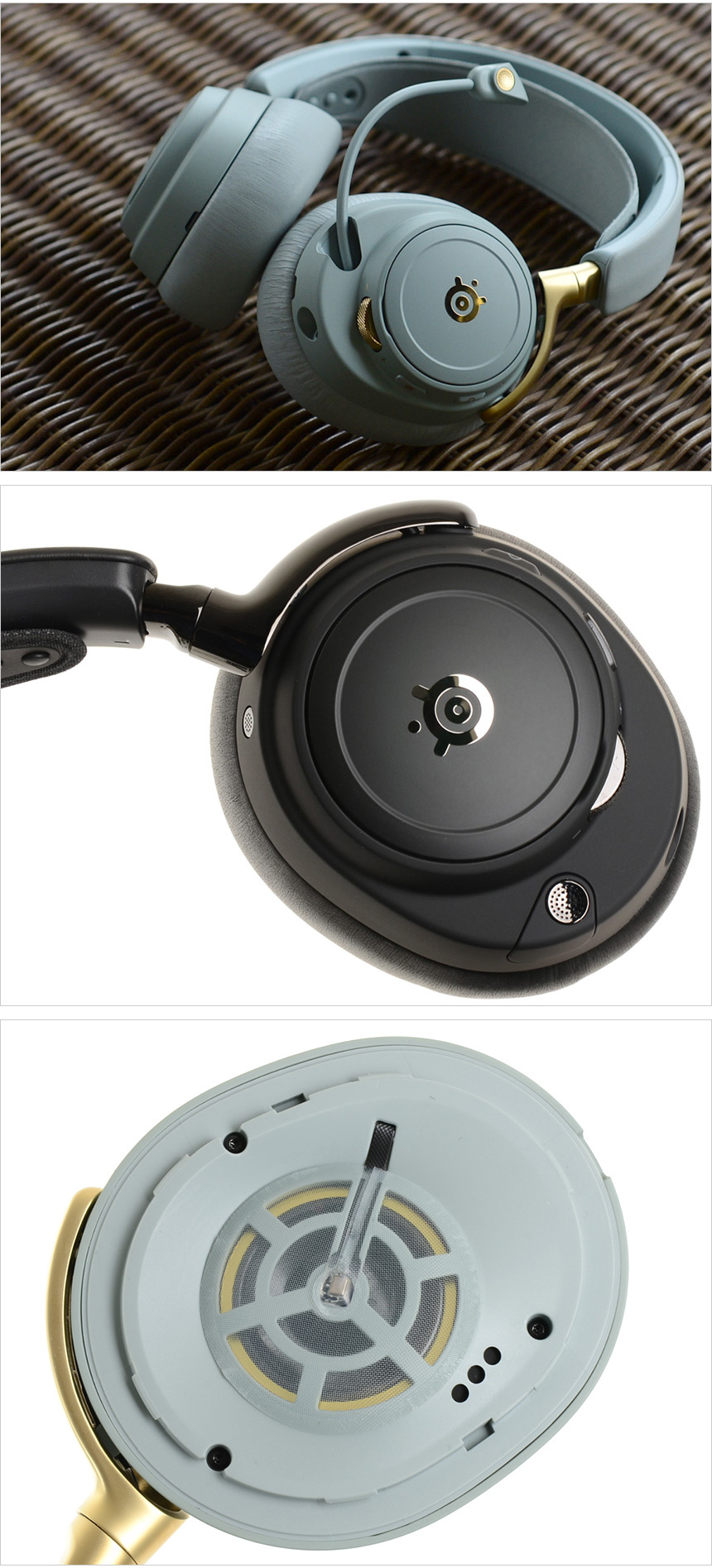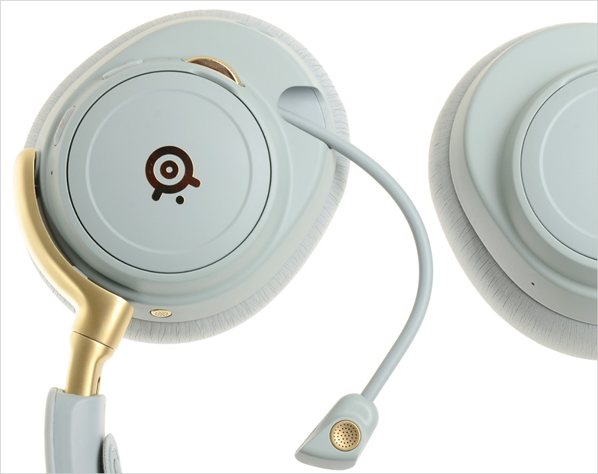 귀를 보호하는 이어패드는 분리가 가능해 장시간 사용후 손쉽게 교체할 수 있다. 매쉬재질 대비 부드러운 마감재를 사용해 귀에 착용했을 때의 느낌이 상당히 좋은 편이며 뛰어난 쿠션감으로 장시간 착용했을 때 머리나 귀의 통증을 최소화 한다. 또한 귀를 완전히 덮도록 설계되어 외부 소음을 효과적으로 차단한다. (스틸시리즈 홈페이지에서 다양한 이어패드를 판매하고 있다.)