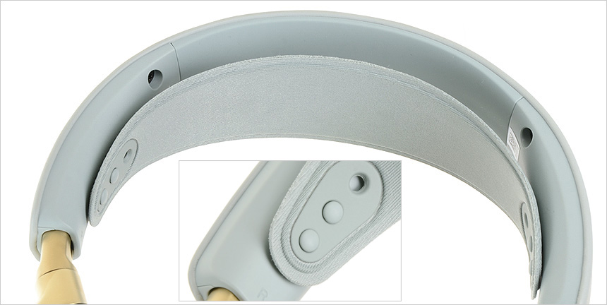 헤드셋 착용시 머리에 가해지는 통증을 최소화 하기 위해 지지대와 헤어밴드가 분리된 것을 확인할 수 있다. 헤어밴드는 부드러운 재질로 머리의 통증을 최소화 하며 일반 제품들과 달리 길이 조절이 가능해 머리크기에 따라 조절해 착용감을 높일 수 있다.