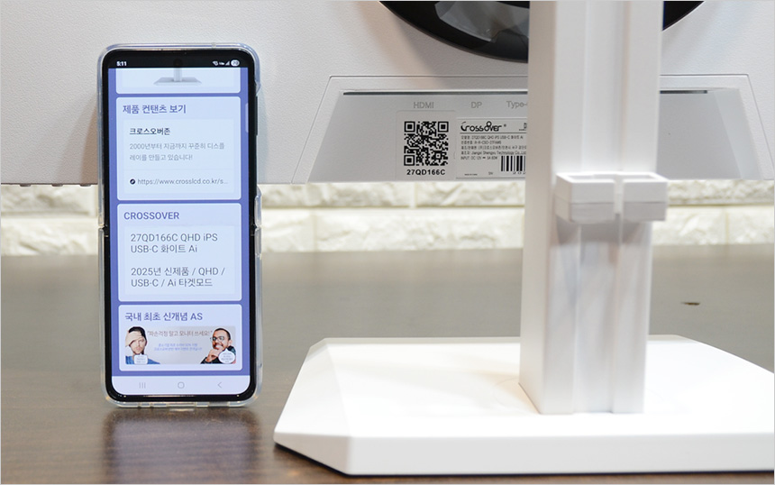 모니터 후면의 QR코드를 스캔하면 제조년월 확인이 가능하며 제품의 상세정보를 손쉽게 확인할 수 있다.