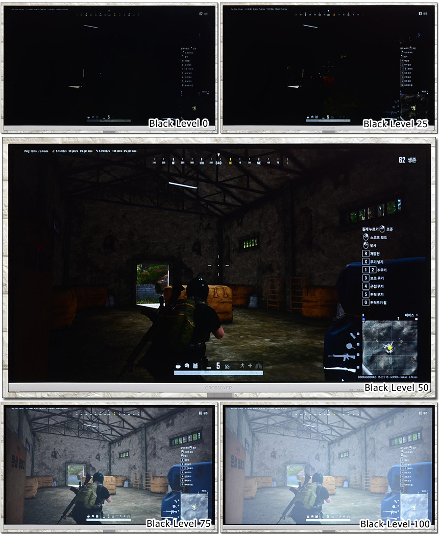 블랙레벌 조정을 통해 게임에서 시인성을 높일 수 있다. (암부가 많거나 야간맵을 경우 블랙레벨을 조정하면 구분감을 높일 수 있다.) 단, 밝아지는 만큼 색감이 떨어지기 때문에 선명도와 시인성을 전반적으로 고려해 설정하기 바란다.