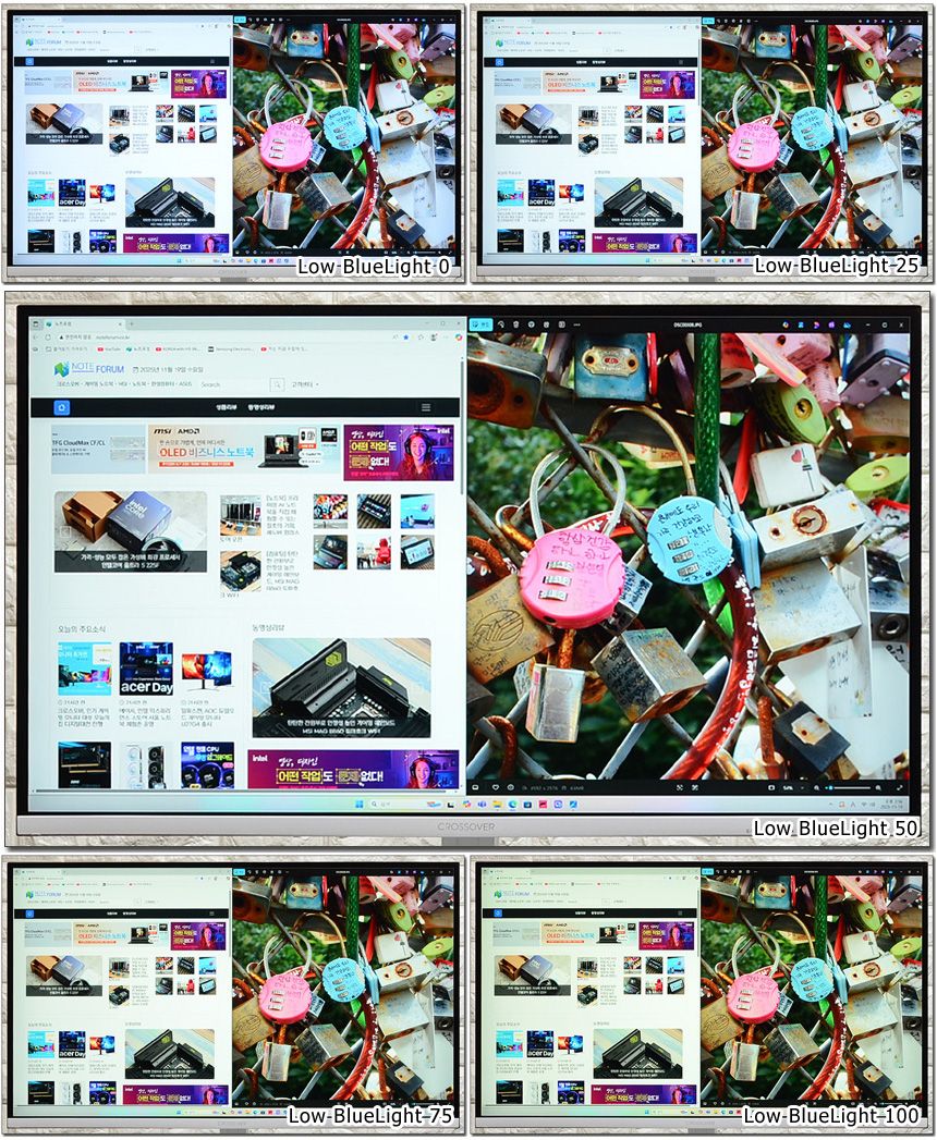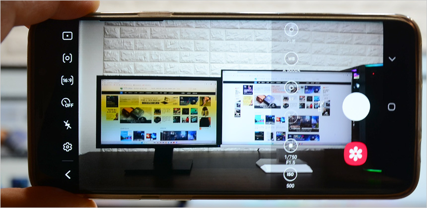스마트폰을 사용하면 플리커 현상을 확인할 수 있다. (전문가 모드에서 셔터스피드 1/300 이상으로 셋팅) 테스트용 모니터는 플리커 현상이 발생하는데 반해 크로스오버 27QD166C는 플리커 현상 없이 깔끔한 영상을 구현하는 것을 확인할 수 있었다. (동영상을 통해 자세히 확인하기 바란다.)