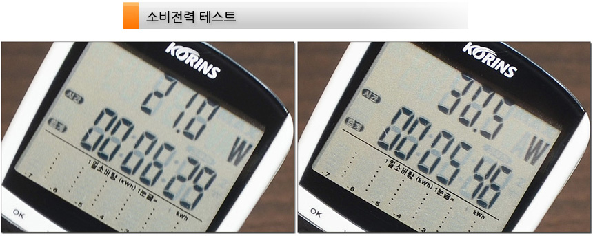소비전력 테스트를 진행하고 있는 모습으로 대기 상태에서는 0.5W 가 표시되었으며 100% 밝기에서는 30.5W, 50% 밝기에서는 21W 의 전력이 소모되는 것을 확인할 수 있었다. FHD 모니터 보다는 높지만 부담스럽지 않은 수준으로 전기세 걱정없이 사용할 수 있을 것이다.