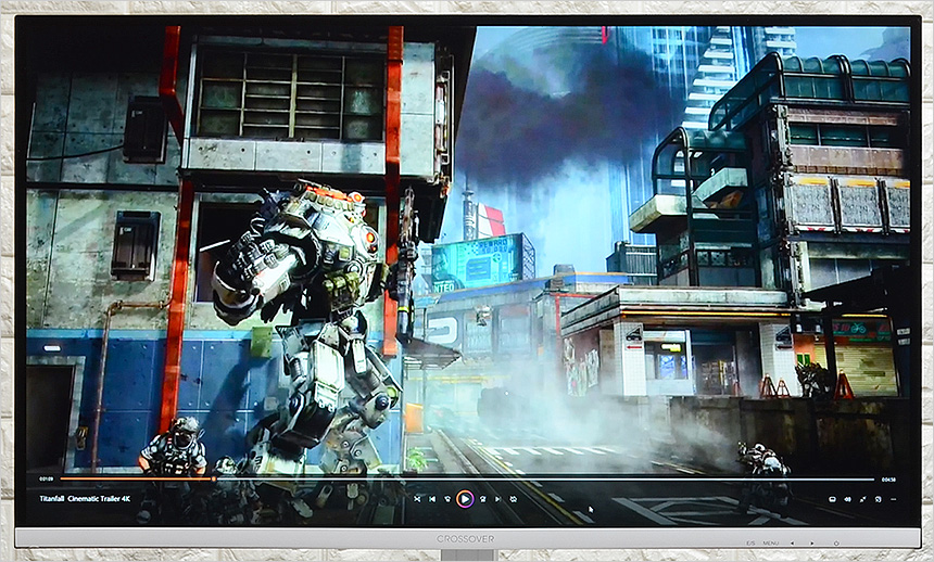 4K 동영상을 이용해 테스트를 진행하고 있는 모습으로 빠른 응답속도를 지원해 잔상없는 깔끔한 영상을 즐길 수 있었으며 QHD 해상도의 IPS 패널이 탑재된 모니터 답게 캐릭터나 배경색의 디테일이 무척 뛰어난 것을 확인할 수 있었다. 슬림베젤 탑재로 몰입감 까지 높인 제품으로 만족스럽게 고화질 영상을 즐길 수 있을 것이다.