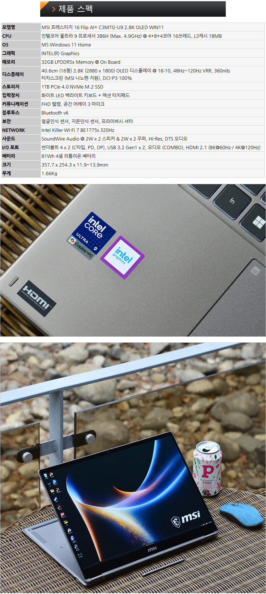 팬서레이크 투인원 프리미엄 노트북, MSI 프레스티지 16 Flip AI+ C3MTG-U9 2.8K OLED WIN11