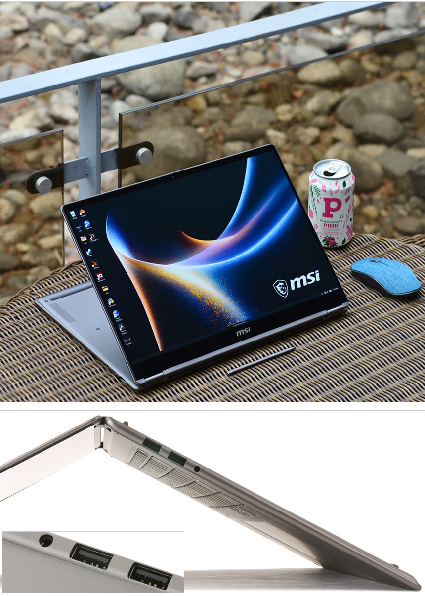 일반 노트북과 달리 360도 회전 터치스크린에 MSI 나노펜 지원으로 어떤 환경에서도 편하게 노트북을 사용할 수 있으며 2.8K 고해상도의 OLED 디스플레이를 탑재해 보급형 노트북에서는 느낄 수 없는 생생한 컬러를 보여준다. 뿐만 아니라 견고한 메탈섀시 적용과 더 가볍고 날렵해진 외관, 최대 24시간 사용이 가능한 긴 배터리 사용시간 지원으로 휴대성을 한층 높였으며 다양한 기능을 지원하는 액션 터치패드를 탑재해 편하게 노트북을 사용할 수 있다.