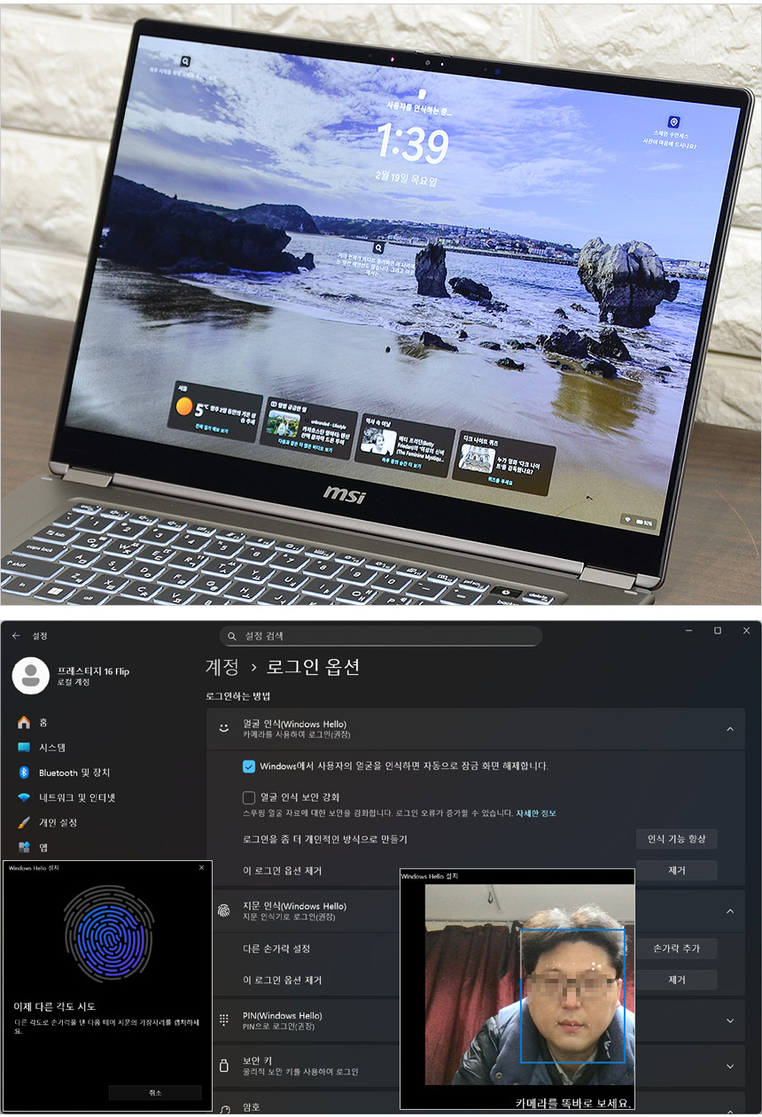 다양한 보안기술을 지원은 이 제품의 큰 장점중 하나라 할 수 있다. 지문인식 센서와 얼굴인식을 위한 IR 카메라가 장착된 모델로 다양한 장소에서 걱정없이 사용할 수 있다. (윈도우즈 헬로에서 얼굴과 지문 등록이 가능하다.) 인식율이 상당히 뛰어나 불편없이 사용할 수 있을 것이다.