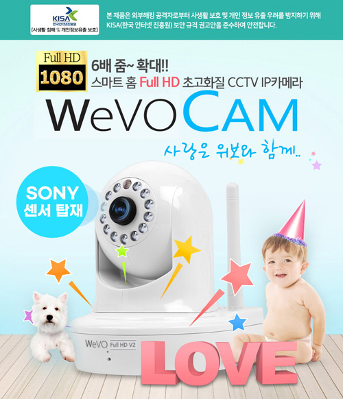 WeVO CAM 200-FHD V2는 200만 화소 FHD 초고화질을 지원하는 고성능 IP카메라다.
