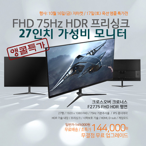 크로스오버존은 보급형 27형 모니터 '크로너스 F2775 FHD HDR 평면 무결점’을 대상으로 특가 이벤트를 펼친다.