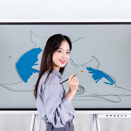 `삼성전자 전자칠판 플립2`는 자연스러운 필기감이 큰 장점이며 다양한 디바이스 연결이 가능하여 실시간으로 구성원들과 콘텐츠 공유가 가능하다.