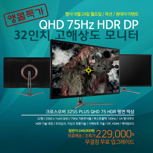 크로스오버존은 인기모니터 '크로스오버 32SS PLUS QHD 75 HDR 평면 떡상 무결점’을 대상으로 특가 이벤트를 펼친다.
