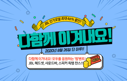 유니씨앤씨는 JBL Quantum 시리즈와 JBL BAR 시리즈, 블루투스 스피커 등 JBL 인기모델을 대상으로 최대 46% 추가할인 혜택이 제공되는 “다 함께 이겨내요” 이벤트를 2020년 8월 26일 진행한다.