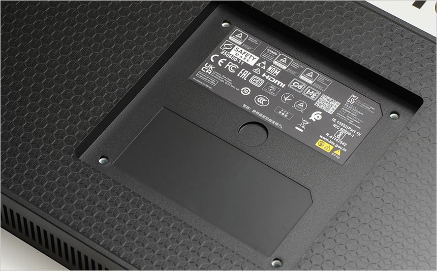 벽에 걸고 사용하거나 모니터암 등에 장착해 사용하려는 유저들을 위해 베사홀을 제공하며 (서있는 상태에서 작업하면 패널 파손의 위험이 있으니 반드시 모니터를 눕혀놓고 스탠드를 분리하기 바란다.) 하단에는 2개의 HDMI 2.1과 DP 1.4, C타입 단자가 제공되어 다양한 디바이스와 연결할 수 있다. 또한 총 3개의 USB 단자가 제공되어 주변기기를 편하게 연결할 수 있다. (참고로 USB A타입 단자는 C타입 연결해서만 활용 가능하다.)