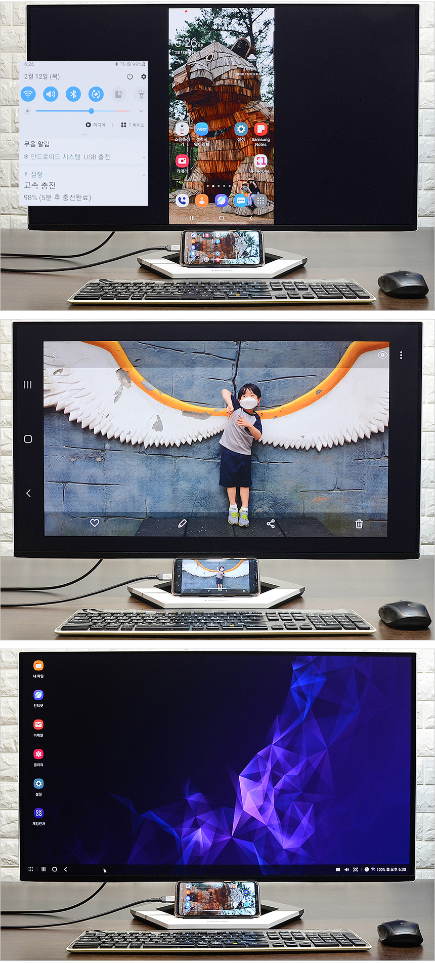 C타입 단자를 지원해 미러링을 지원하는 스마트폰과 연결해 대화면으로 영상을 즐길 수 있다. 특히 15W PD충전 지원으로 스마트폰을 연결하면 자동으로 전원을 공급하며 3개의 USB 단자가 제공되어 키보드와 마우스 등을 연결해 활용할 수 있다. (삼성 DEX 모드 사용시 특히 유용하다.)