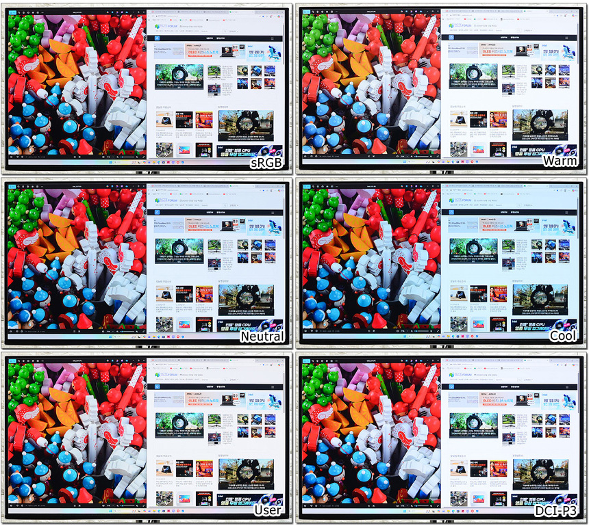 색온도 설정 기능도 제공해 게임이나 컨텐츠에 맞는 색감을 사용자가 조정할 수 있다. (사진상으로는 큰 차이가 없어 보이지만 실제로 보면 차이가 느껴진다. 동영상을 참조하기 바란다.)