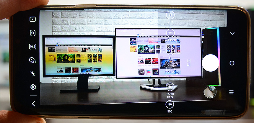 시야각 테스트를 진행하고 있는 모습으로 극단적인 각도에서도 색의 왜곡이 전혀 없는 것을 확인할 수 있었다. 특히 각도가 극단적으로 갈수록 밝기가 떨어지는 LCD 패널과 달리 어떤 각도에서도 동일한 밝기를 보여주었다.