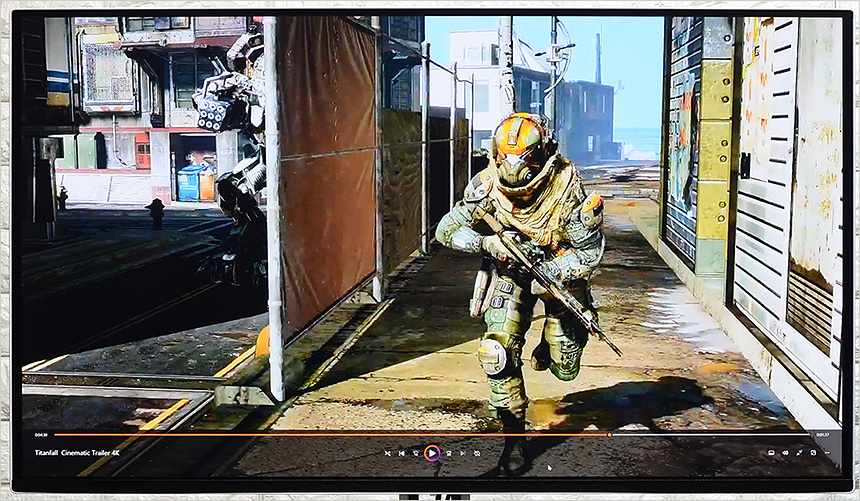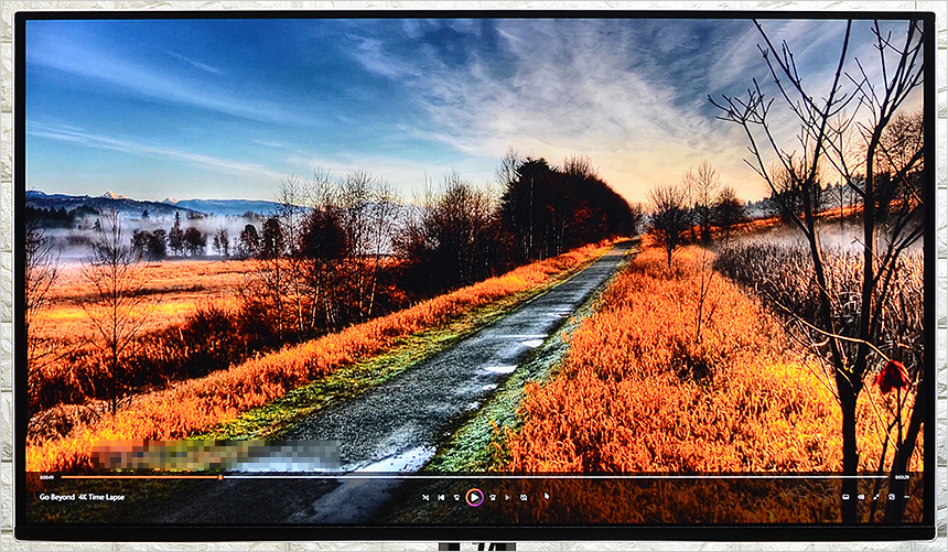 4K 동영상을 이용해 영상 테스트를 진행하고 있는 모습으로 감탄사를 연발하게 하는 진한 컬러가 인상적이었으며 4K 특유의 디테일도 아주 마음에 들었다. 진한 색감을 선사하는 QD-OLED 모니터로 게임은 물론 고화질 동영상 감상용으로도 유용하게 사용할 수 있을 것이다.