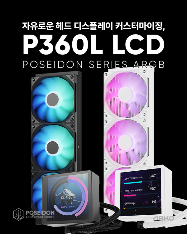 앱코에서 IPS 패널 디스플레이 탑재 CPU 수랭쿨러 ‘포세이돈 P360L LCD ARGB 디스플레이 (이하 ‘포세이돈 P360L’)를 출시했다.