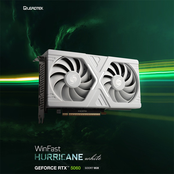 서린씨앤아이가 리드텍의 윈페스트 지포스 RTX 5060 허리케인 D7 8GB 화이트(WinFast GeForce RTX 5060 HURRICANE D7 8GB WHITE) 그래픽카드를 국내 출시했다. 신제품은 NVIDIA GeForce RTX 5060 GPU와 8GB GDDR7 메모리를 기반으로, 최신 플랫폼 환경에서의 게이밍 및 크리에이티브 활용을 겨냥한다.