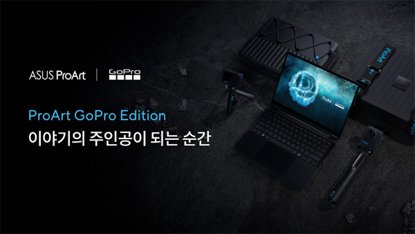 프로세서로는 AMD 라이젠 AI Max+ 395를 탑재해 16코어 Zen 5 CPU와 고성능 라데온 그래픽, AI 엔진을 통합했다. 이와 함께 최대 128GB LPDDR5X 메모리를 공유 구조로 구성해 고해상도 액션 영상 편집은 물론 AI 기반 크리에이티브 작업에서도 강력한 퍼포먼스를 제공한다. 또한 GoPro 클라우드와 연동되는 ASUS 스토리큐브(StoryCube)를 통해 촬영 콘텐츠를 한곳에서 관리하고, 빠른 파일 미리보기와 분류, 검색까지 이어지는 크리에이티브 워크플로우를 한층 강화했다. 여기에 ASUS 다이얼패드(ASUS DialPad)를 적용해 정밀한 편집 제어를 지원하며, GoPro 청록색 인디케이터로 고프로 에디션만의 아이덴티티를 더했다. 13.3인치 16:10 비율의 3K OLED 디스플레이는 400니트 밝기와 100% DCI-P3 색 영역, 팬톤 인증을 통해 HDR 기반 영상 작업에서도 정확한 색 표현과 몰입감 넘치는 시각 경험을 선사한다.