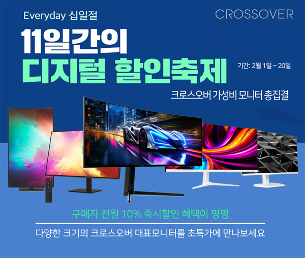 크로스오버는 자사의 인기 게이밍 및 고해상도 모니터 69종을 대상으로 11번가 2026년 2월 에브리데이 십일절 이벤트를 진행한다고 밝혔다.