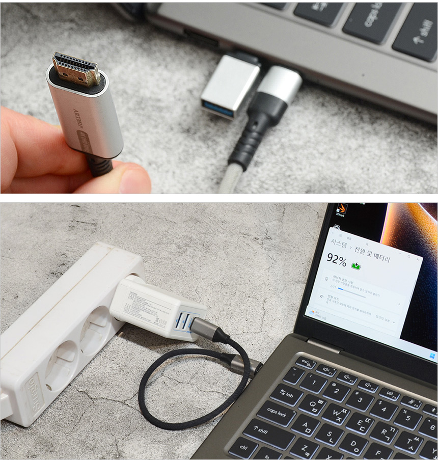 썬더볼트4 단자는 빠른 데이터 전송이 가능하며 디스플레이 출력을 지원해 모니터를 연결해 사용할 수 있다. 또한 A타입 젠더를 장착하면 일반 주변기기 연결도 가능하며 PD충전 기능을 제공해 손쉽게 전원을 공급할 수 있다.
