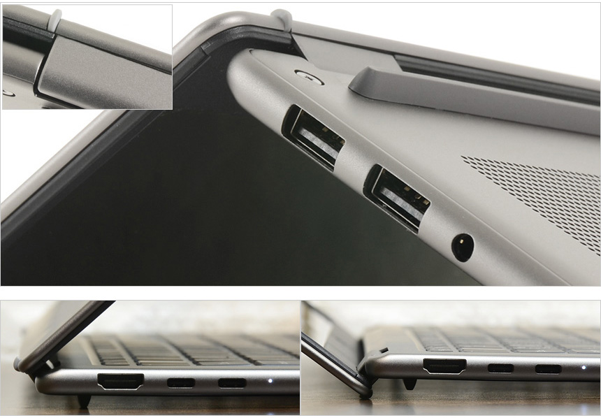 상판을 들어 올리면 자연스럽게 하판이 들리며 키보드에 경사가 생긴다. 좀더 쾌적한 타이핑이 가능하며 바닥면에 여유공간이 생겨 스피커 부밍 현상을 최소화 할 뿐만 아니라 차가운 공기가 원활하게 내부로 유입된다. 이를 통해 안정성을 높일 수 있다.