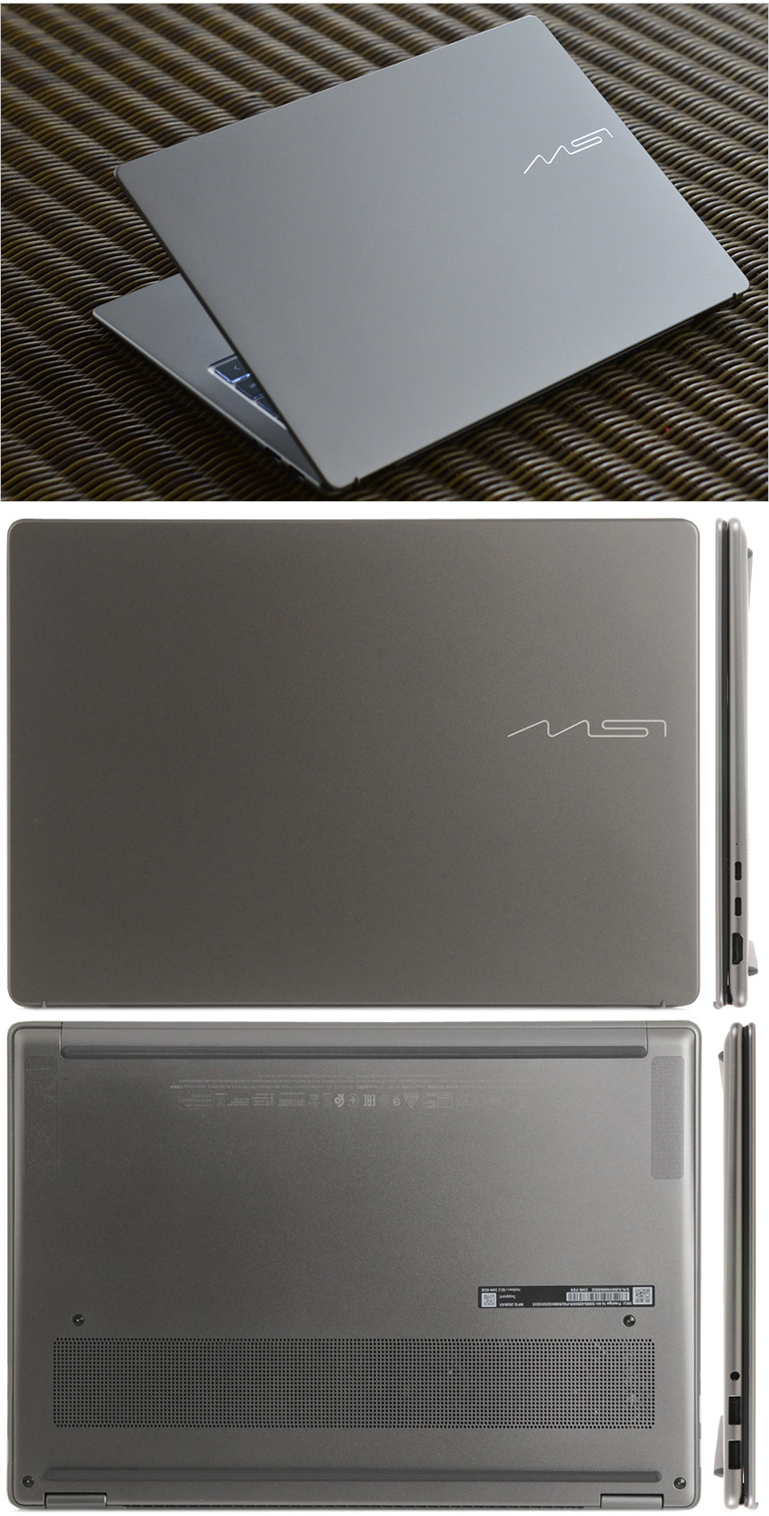 노트북 후면부의 모습을 뜨거워진 내부 공기가 빠져나오도록 통풍구가 설치된 것을 확인할 수 있다. 참고로 이 제품은 휴대성에 특화된 모델임에도 듀얼팬을 적용했으며 넓은 방열 면적으로 효율성을 높인 베이퍼 챔버 쿨러와 내부 공기 흐름을 최적화 한 인트라 플로우 설계로 소음을 최소화 하는 동시에 온도를 효과적으로 낮춰준다.