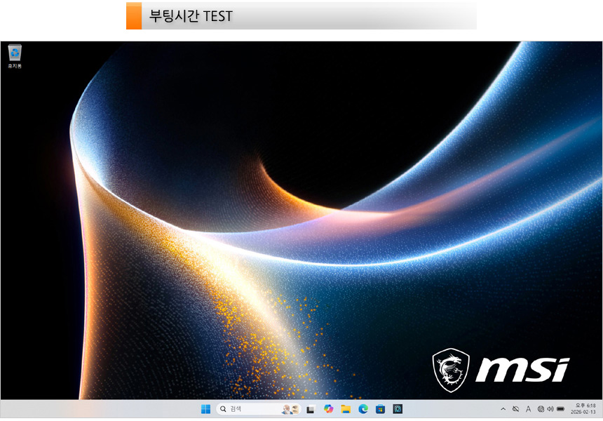 노트북이 완전히 꺼진 상태에서 전원 버튼을 눌러 바탕화면이 나올때 까지 (콜드 부팅) 의 시간을 측정했는데 13초가 소요된 것을 확인할 수 있었다. 기다림의 지루함 없이 노트북을 사용할 수 있을 것이다.