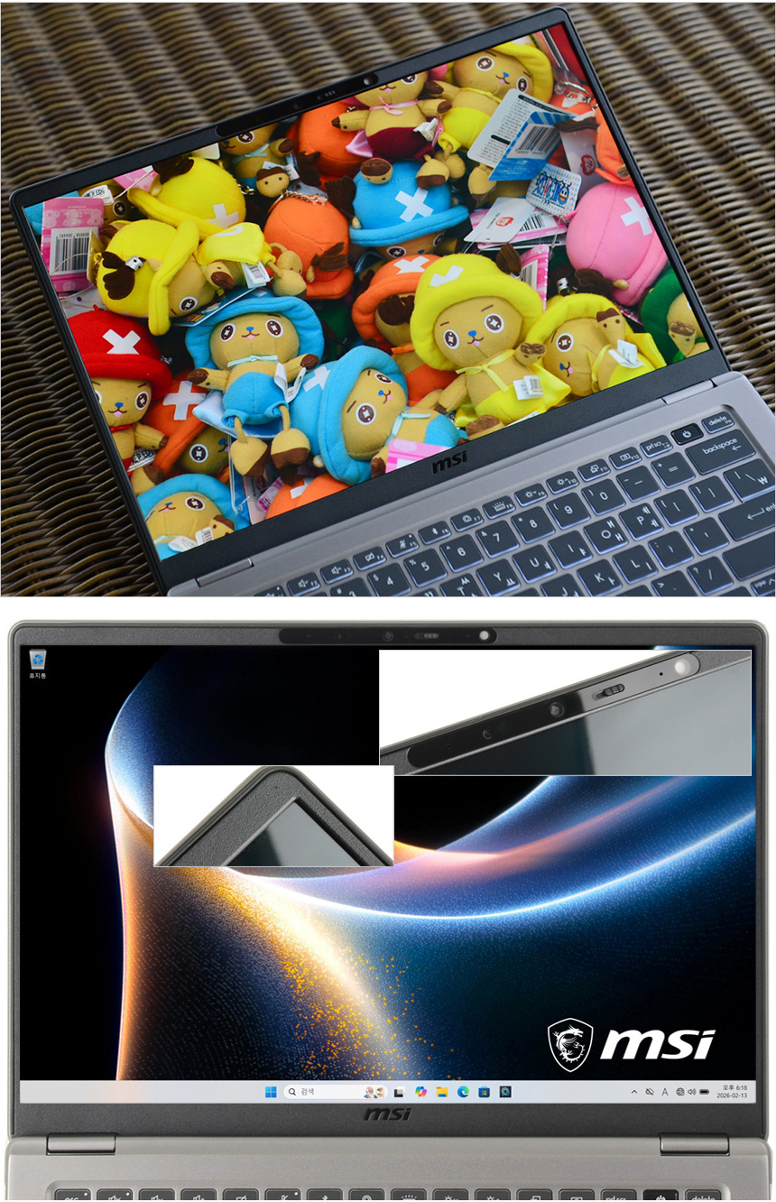 슬림 베젤을 적용해 크기는 줄이고 영상 몰입감은 한층 높였으며 테두리 부분에는 디스플레이 범퍼가 설치되어 충격등으로 인한 패널 파손을 미연에 방지한다. 또한 상단에는 FHD 웹캠과 마이크가 설치되어 화상회의나 셀프촬영 용도로 유용하게 활용할 수 있다. (2개의 마이크가 설치된 일반 노트북과 달리 키보드 하단에 마이크를 추가해 화상회의시 더 명확하게 음성을 전달할 수 있다.)