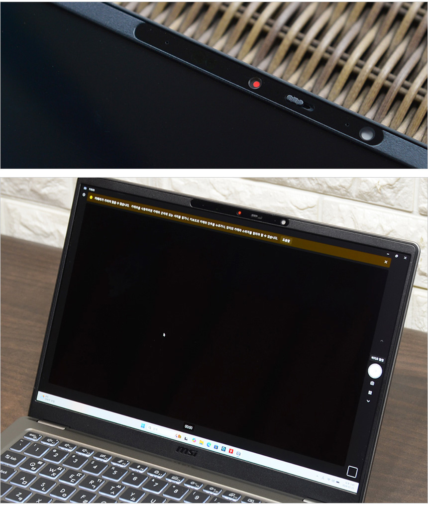 노트북에 장착된 FHD 웹캠의 화질을 확인하고 있는 모습으로 HD웹캠 기반의 일반 노트북과 확연히 비교되는 선명한 영상을 보여주었다. (디테일에서 분명한 차이를 보여주었으며 하이라이트가 날라가는 현상도 발생하지 않았다.) 화상회의는 물론 촬영 등의 용도로 유용하게 활용할 수 있을 것이다.