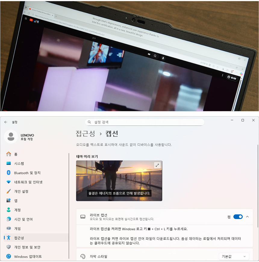 AI 가 음성을 텍스트로 변환해 주는 라이브 캡션 기능을 사용할 수 있다. 한국어를 포함한 다양한 언어의 오디오 자막을 텍스트로 표시해 주어 사무실 등에서 스피커나 이어폰을 사용하기 힘들 경우나 화상회의 에서 적극적으로 사용하기 바란다.