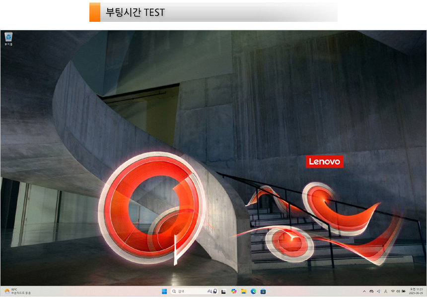 노트북이 완전히 꺼진 상태에서 전원 버튼을 눌러 바탕화면이 노출될 때 까지의 시간 (콜드부팅) 을 측정했는데 14초가 소요되었다.