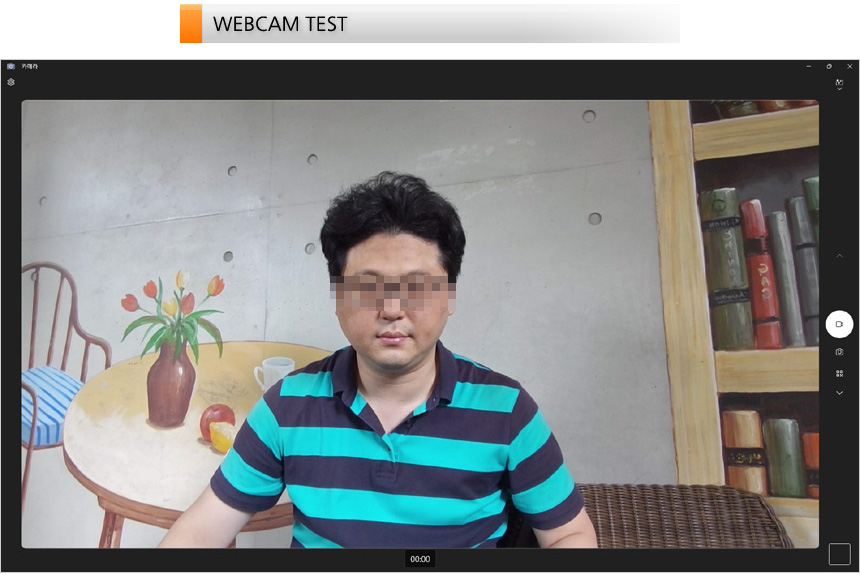 웹캠의 화질을 확인하고 있는 모습으로 5MP 고해상도를 지원해 HD 웹캠과는 디테일에서 확연한 차이를 보여주었다. 화상회의가 많은 재택근무자나 파견 및 출장이 잦은 직장인 들이 유용하게 사용할 수 있을 것이다.