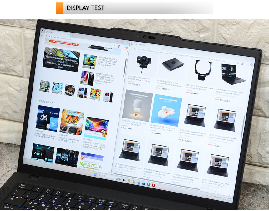14형 크기에 WUXGA 해상도를 지원해 2개의 창을 띄어두고 사용할 수 있었다. 특히 슬림 베젤 적용으로 몰입감을 높였을 뿐만 아니라 세로가 긴 16:10 비율 지원으로 글을 편하게 읽을 수 있었다.